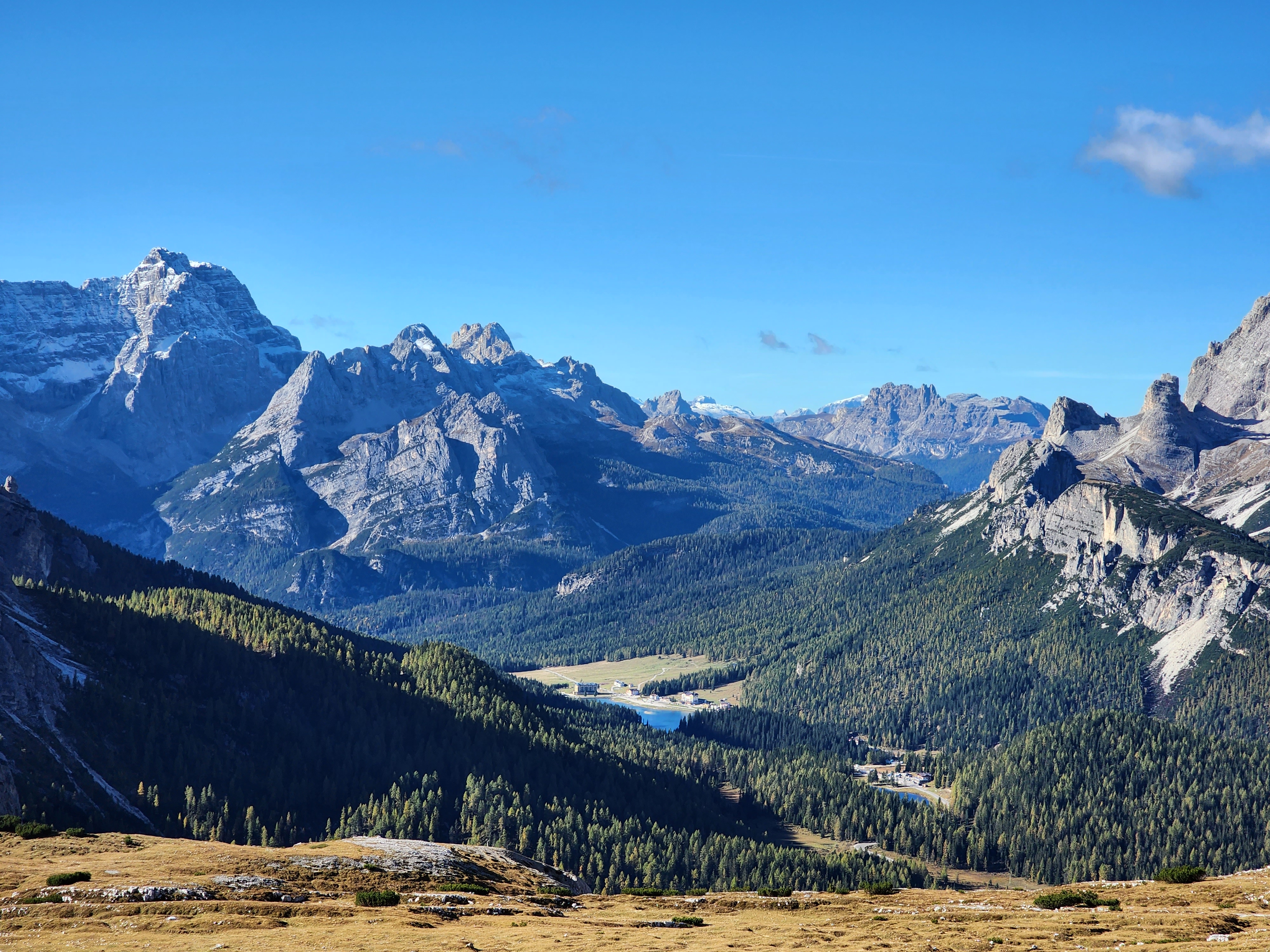 다행히 우리는 보통 주차장이 다 차는 시간인 오전 10시 전에 도착해서 3번째 주차장 자리를 배정받았다. 주차장 비용은 몇 년 전과 변함없이 30유로. 물가상승률에 따라 리프트나 교통권 비용이 올라가서 트레치메 주차장 비용도 올라갔을 거라 예상했는데 아니어서 살짝 놀랐다. 트레치메 트래킹 시작점에 있는 아우론조 산장 바로 아래에 있는 주차장으로 자리는 나쁘지 않았다.