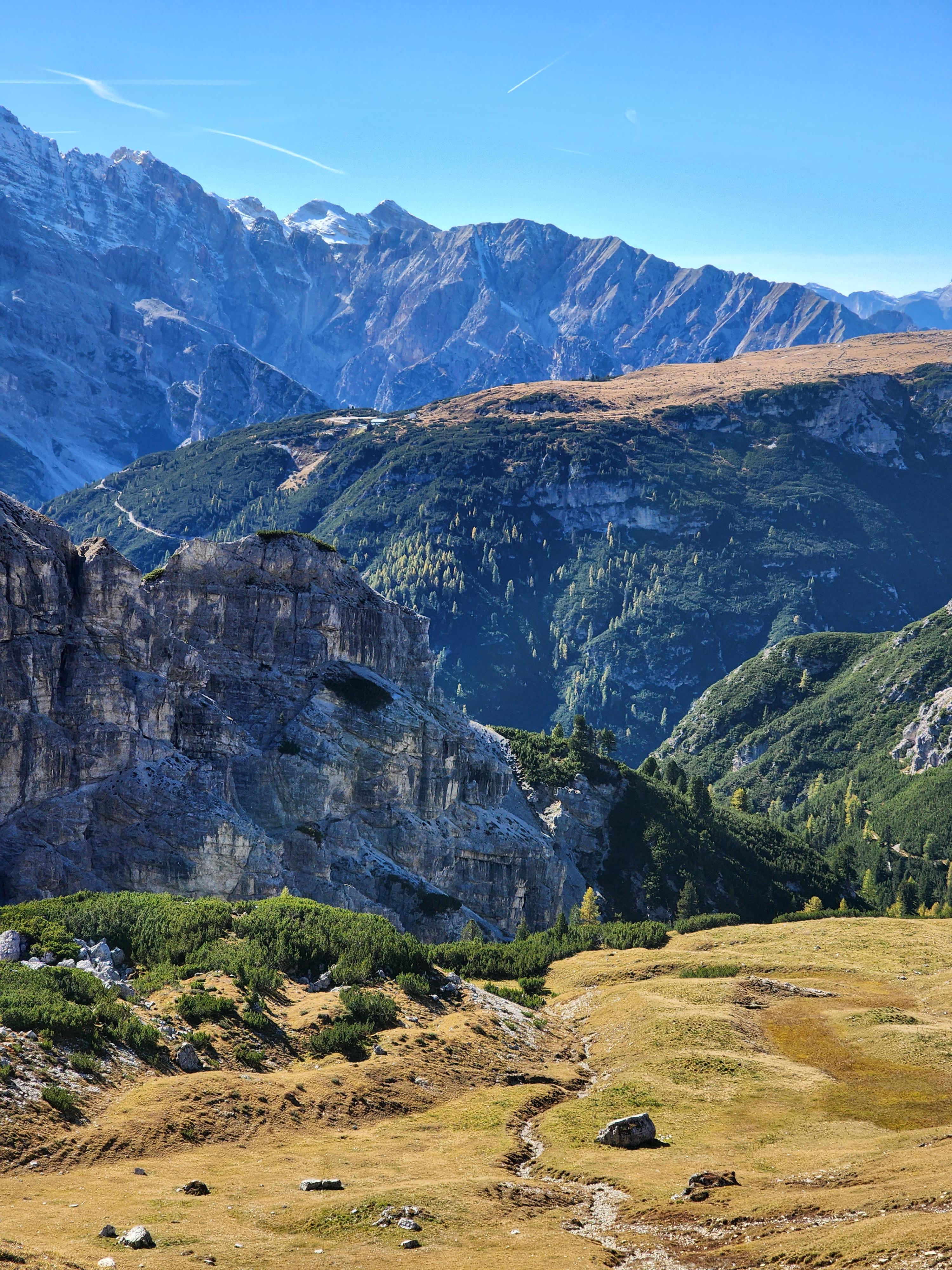 올라가서 보는 경치는 또 다른 풍경이다. 깎아지른 협곡과 저 멀리 보이는 기암괴석들, 설산. 이제 평지만 나오나 싶지만 전혀 아니고, 오르막 내리막 바뀌는 구간이 무척 많다. 확실히 105번 길을 시작으로 트레치메를 한 바퀴 걷는다면 초반에 지쳐 나가떨어질 수도 있을 것 같다. 여유가 없으니 풍경을 볼 힘도 줄었지만... 우리는 셔터를 놓치지 않았다. 아무렇게나 시선을 놓아도 어느 곳이나 너무 아름답다.